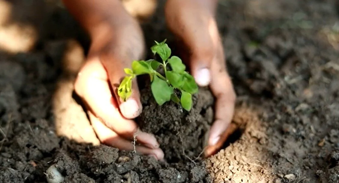 “I know how,” he said. “Watch me.” He loosened the sprout from the oat milk carton. Digging a small hole in the ground, he placed the baby plant carefully and covered its delicate roots.